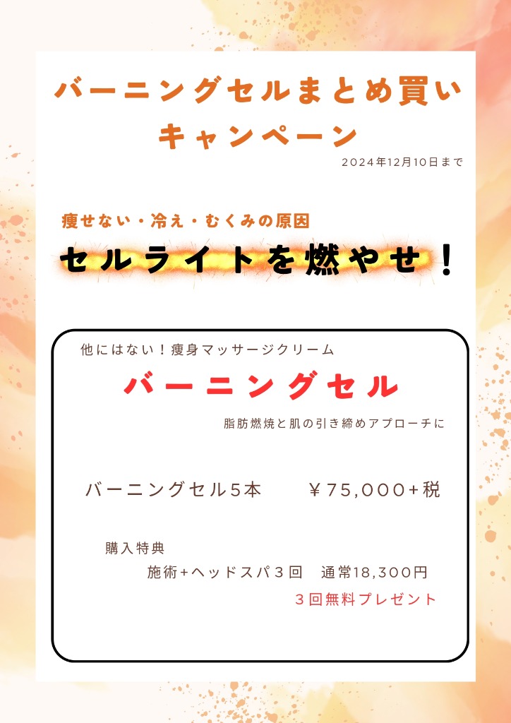 痩身マッサージクリームで最強の【バーニングセル】のまとめ買いキャンペーンを開催します!