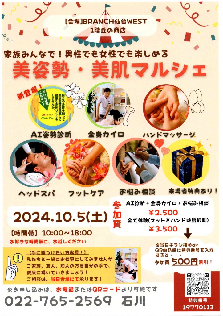 10/5(土)ブランチ仙台にて、美姿勢・美容マルシェ開催!